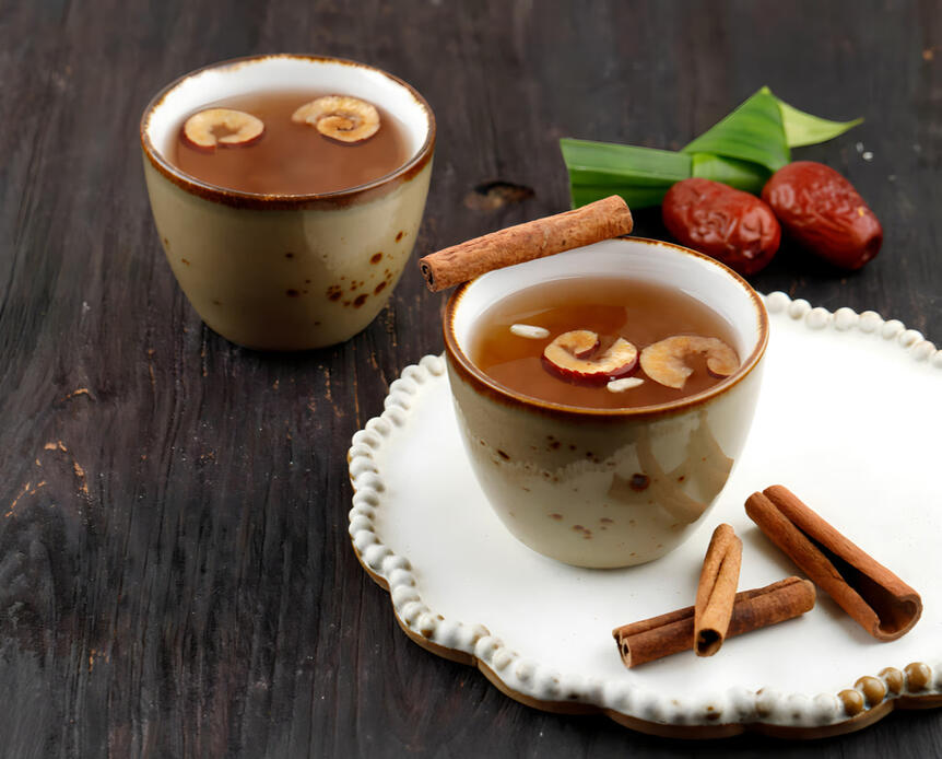 DOMAN TEA fruit tea, traditionally an after-supper drink brewed from cinnamon, ginger, and dried persimmons. naturally sweet, though additional honey is supplied on request. served hot or iced. 2000g