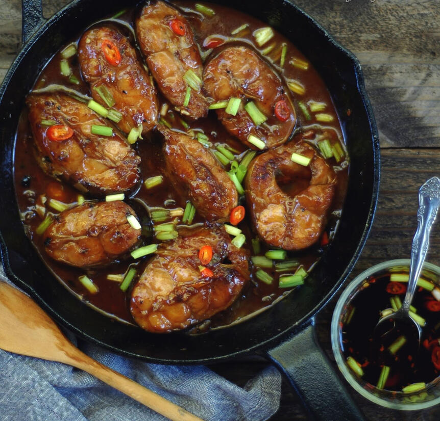 CÁ KHO TỘ braised fish stew, a Nagxian dish, mother's recipe. freshly caught herring from the ruby sea, slow cooked over low heat in soy sauce, fish sauce, and rock sugar to create a delectable, caramelized stew. 3000g
