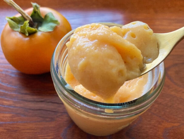PERSIMMON PUDDING dessert, fresh persimmons are made into a purée to be steamed with eggs to create a light and refreshing custard. just the right amount of sweet. 2000g
