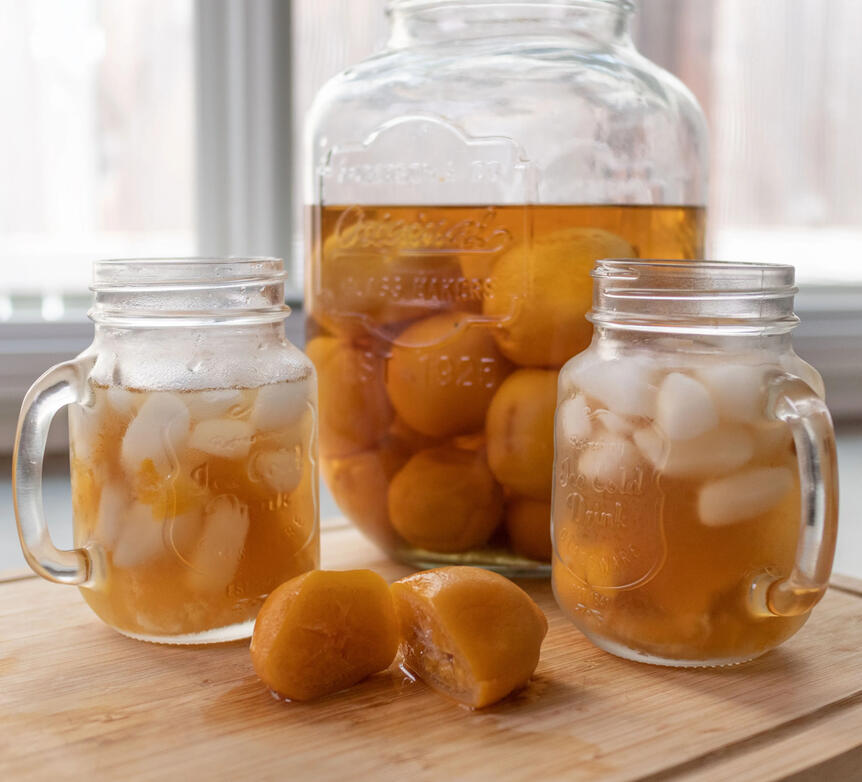 DOMAN TEA fruit tea, traditionally an after-supper drink brewed from cinnamon, ginger, and dried persimmons. naturally sweet, though additional honey is supplied on request. served hot or iced. 2000g